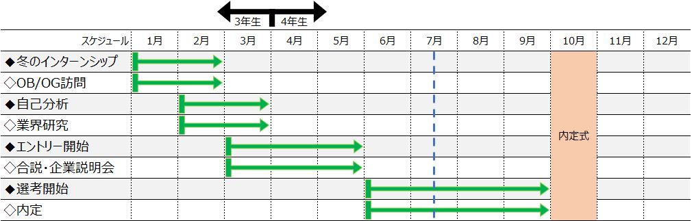 ただし、これはあくまでも目安なので、このスケジュールと実態のスケジュールが異なる企業は多いです。